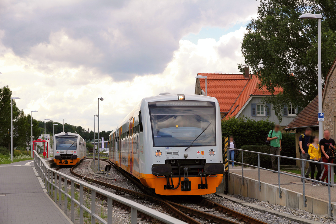 Ein Schinenbus von der ZLSM kommt aus Simpelveld(NL) nach Aachen-Vetschau(D) und kommt aus Richtung Niederlande und hat gleich das Ziel Vetschau bei Aachen(D) erreicht.