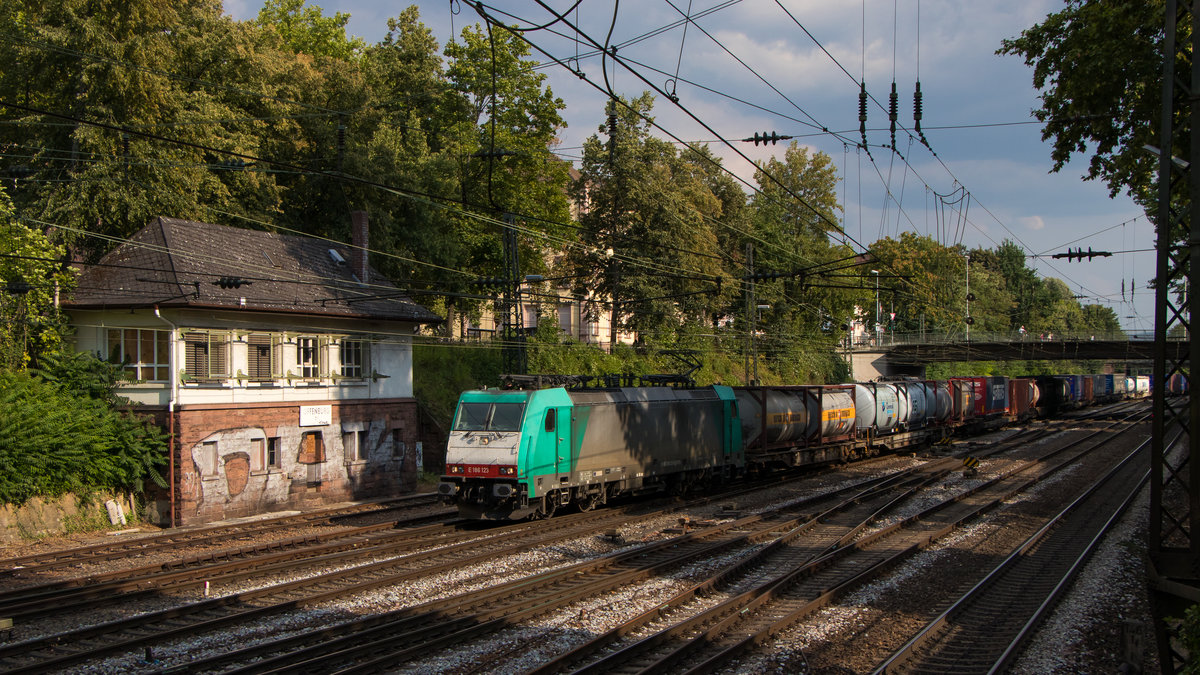 Von Impressionen des Bahnbilder-Treffens 2015 inspiriert, machte ich mich auf den Weg zum bekannten Parkhaus in der Julius-Bührer-Straße am Bahnhof Singen(Hohentwiel). Von dort aus konnte die abgestellte 185 105-4 DB aufgenommen werden. [14.7.2018 | 17:55 Uhr]