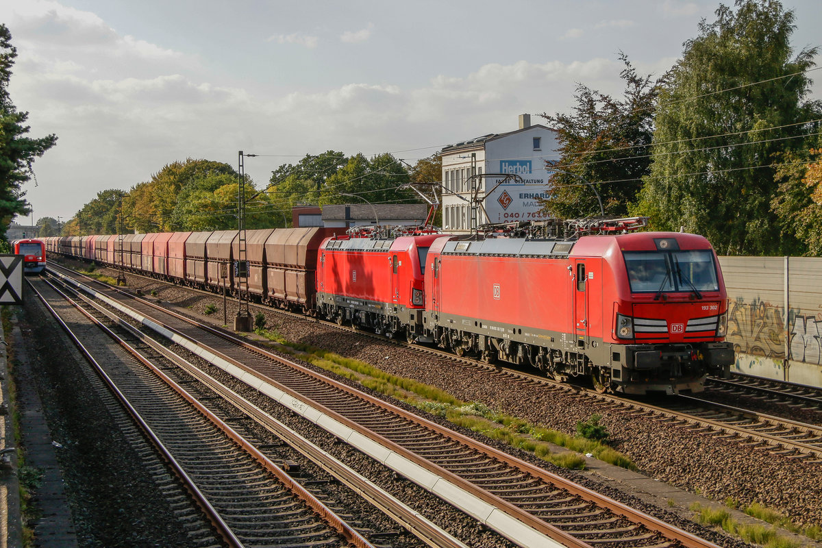 193 302 & 193 344 DB Vectrons mit Kohlezug in Hamburg Hausbruch, am 20.09.2018.