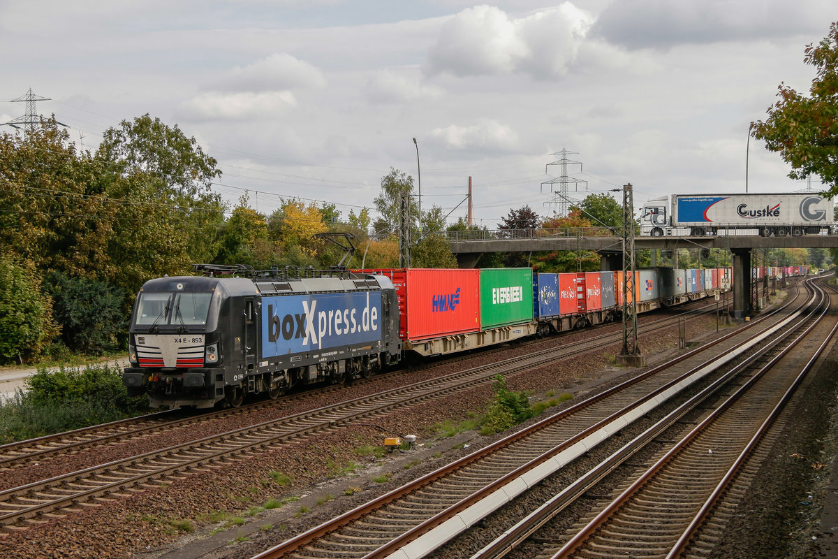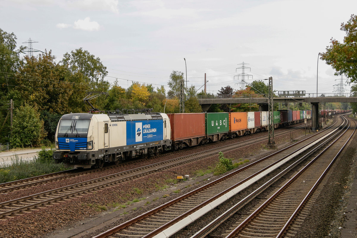 193 327 DB Vectron mit Containerzug in Hamburg Hausbruch, am 20.09.2018.