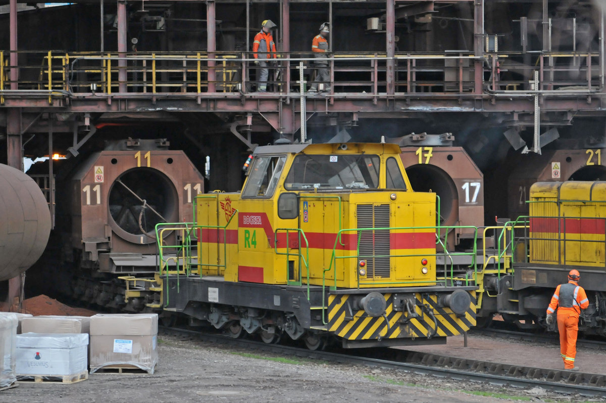 Dillingen Hüttenwerk. Rogesa R4 - Henschel B'B'dh DE-500 (32566) Baujahr 1982 am 02 Januar 2019. Von der Saarlouiser Strasse aus aufgenommen.