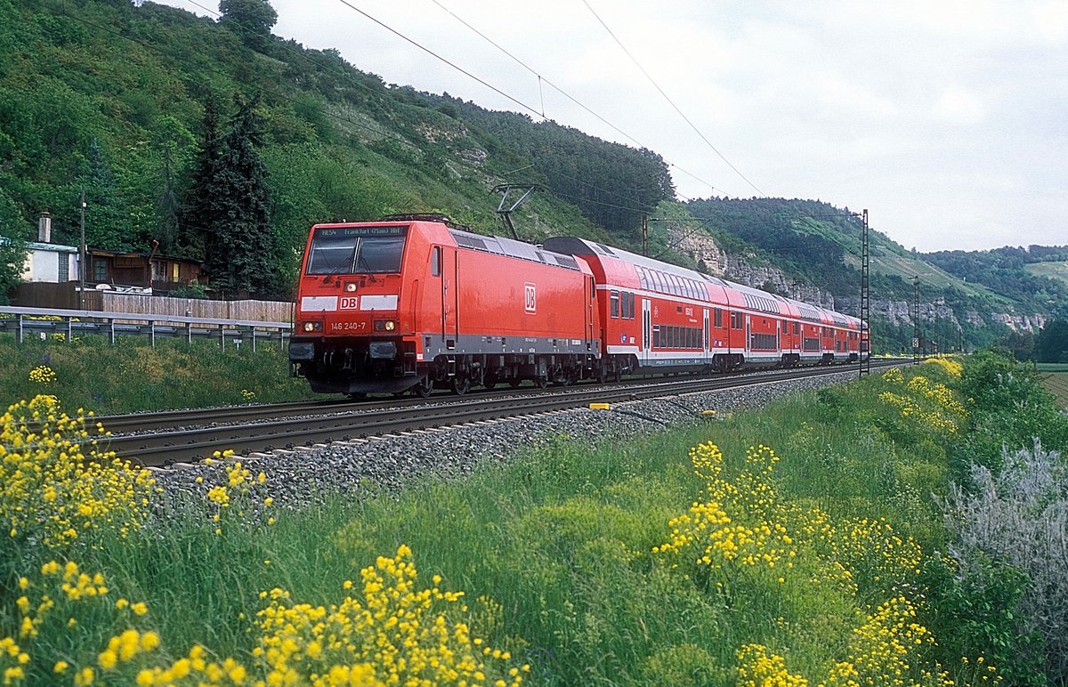 Am 05.06.2017 bespannte EE 110 169-0 einen Pilgerzug nach Lourdes bis an die Schweizer Grenze in Basel SBB. Hier fuhr sie bei Müllheim (Baden) durchs Markgräflerland und hatte nur noch wenige Kilometer vor sich.