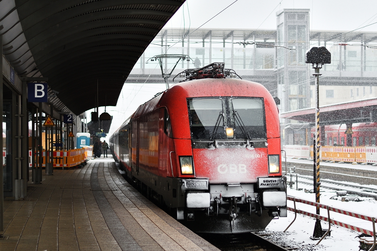 1216 228 mit Railjet in Peggau - Deutschfeistritz am 11.01.2019.