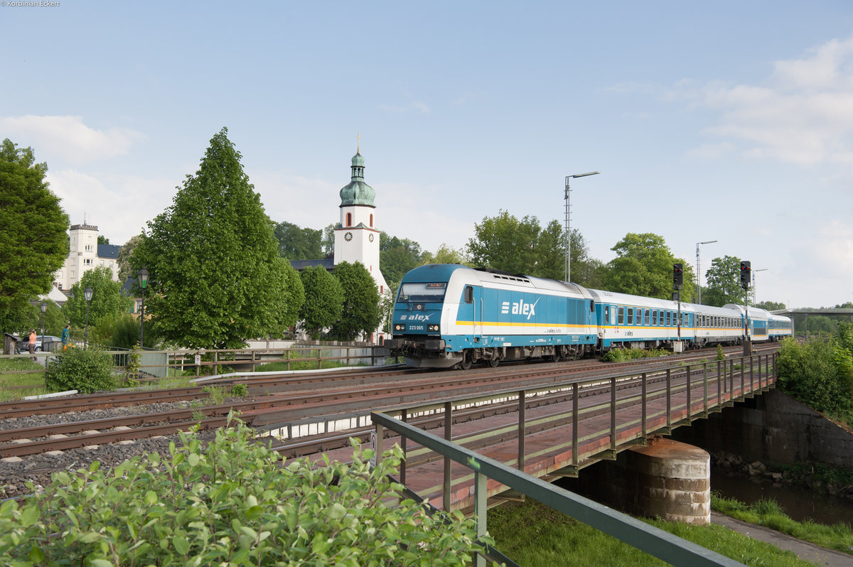223 065 mit dem ALX 84111 von München Hbf nach Hof Hbf bei Oberkotzau, 11.05.2018