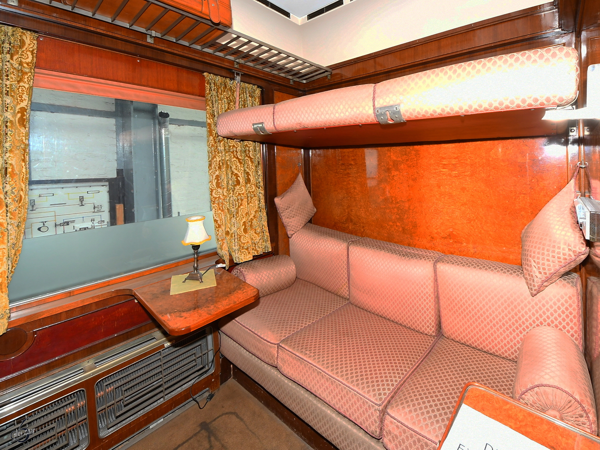 Ein Abteil im Salonwagen "10207", welcher 1937 für den Reichspropagandaminister Goebbels gebaut wurde und später als Wagen für den Bundesminister für Verkehr diente. (Eisenbahnmuseum Koblenz, August 2018)