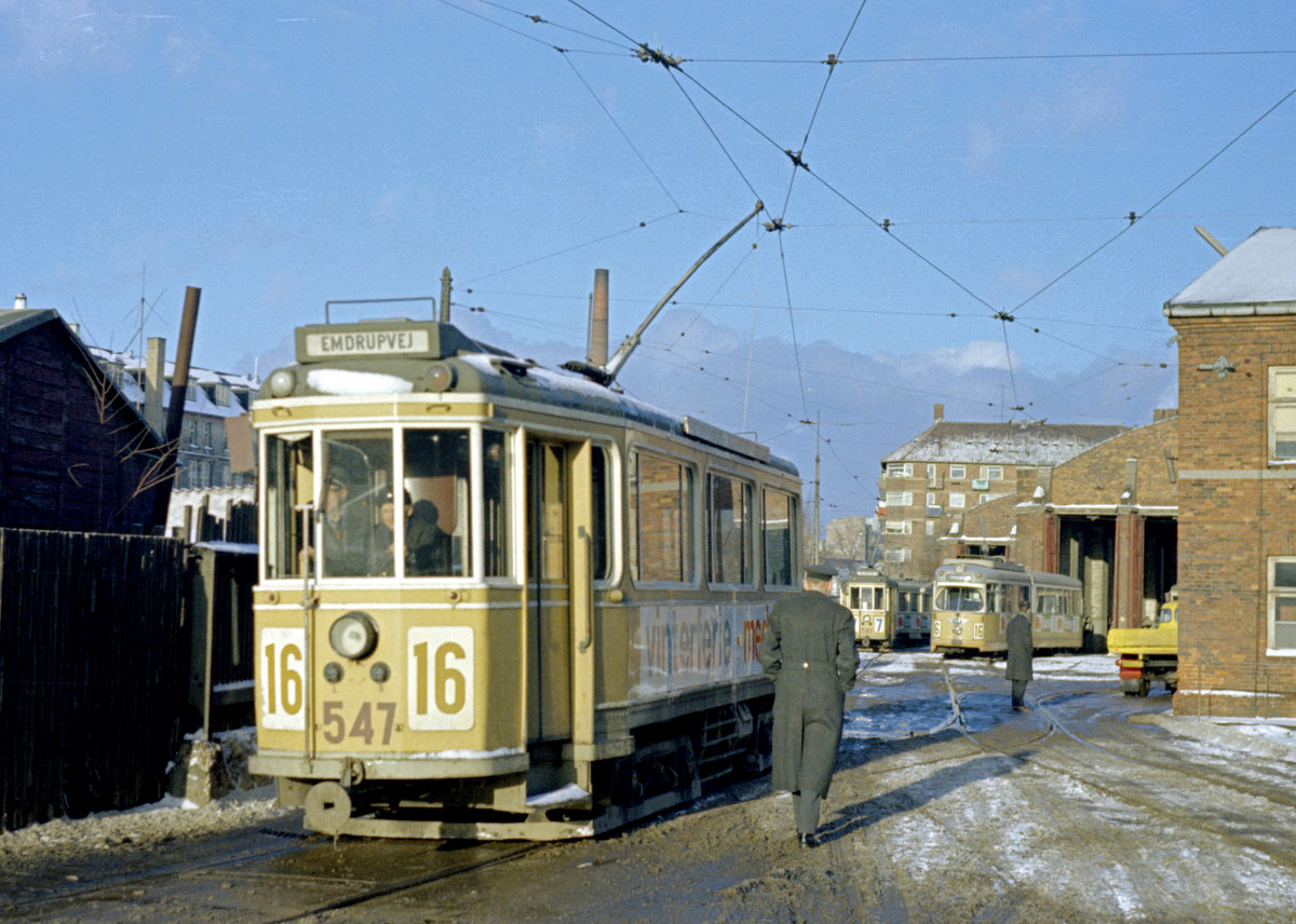 København / Kopenhagen Københavns Sporveje SL 16 (Tw 547) Nørrebro, Nørrebro Remise (: Straßenbahnbetriebsbahnhof Nørrebro) am 2. Januar 1970. - Scan eines Farbnegativs. Film: Kodak Kodacolor X.