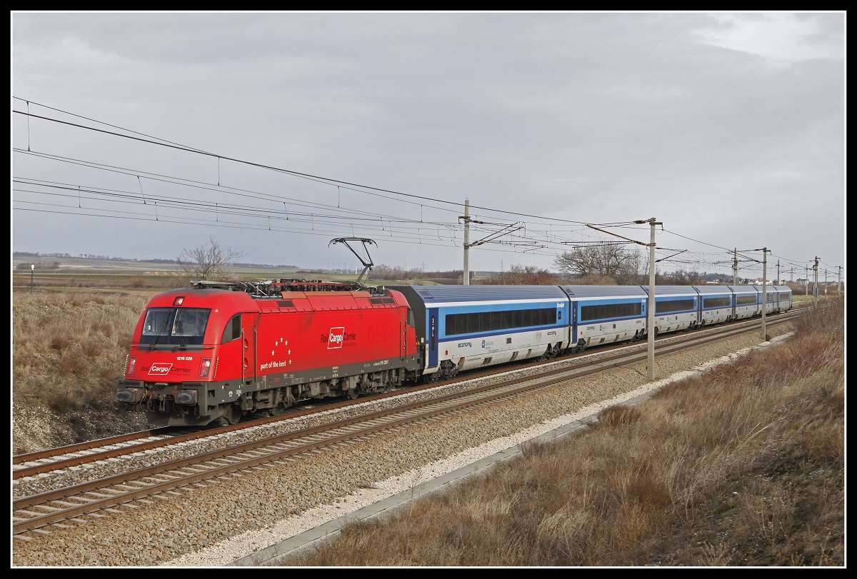 1216 228 mit Railjet bei Tallesbrunn am 14.01.2019.