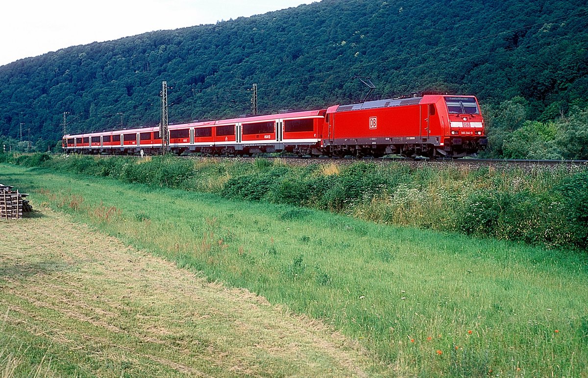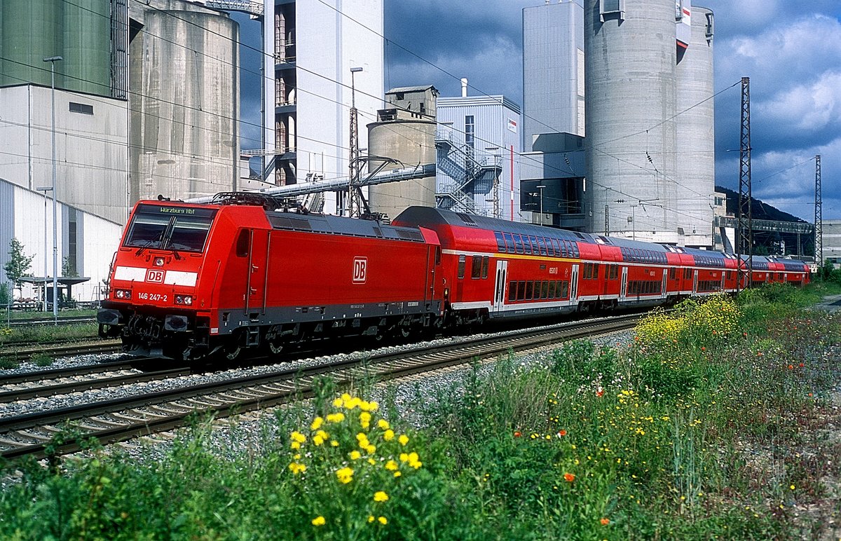 Am 22.7.2018 war 146 269 mit RE 10524 am Haken auf dem Weg von Koblenz Hbf. nach Oberhausen Hbf. Zwischen Koblenz und Andernach wird dabei in Weißenthurm das ehemalige Kernkraftwerk Mülheim-Kärlich, welches gerade abgerissen wird.