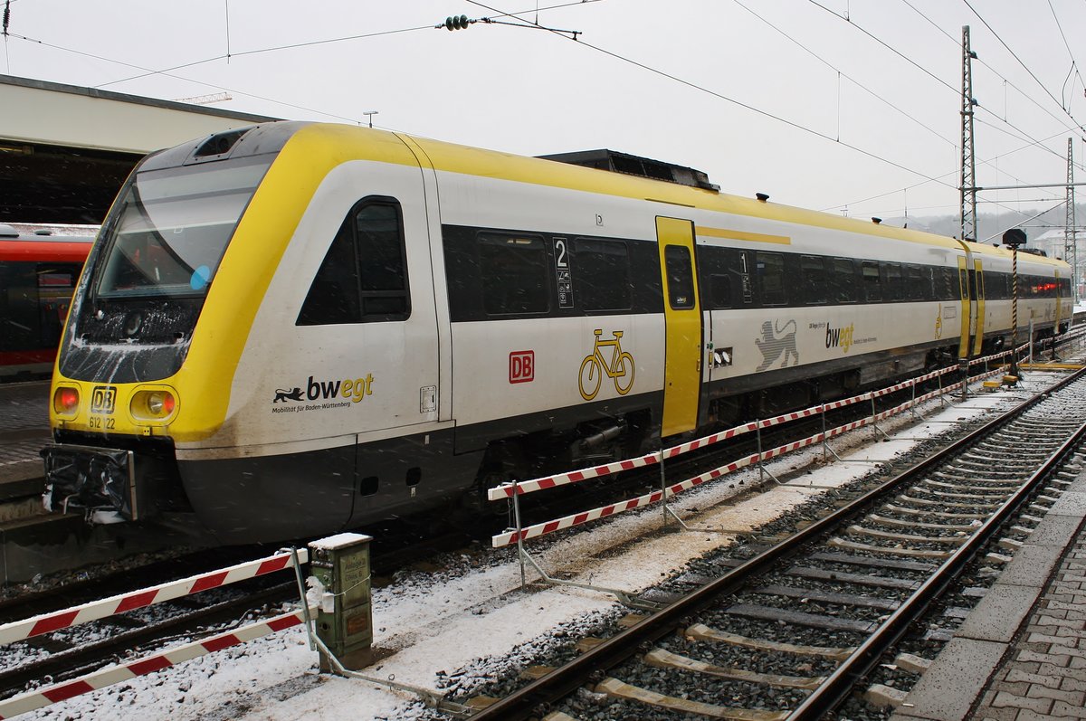 218 436-4 bei dichtem Schneefall kurz hinter Lindau in Richtung Friedrichshafen trägt bereits das neue "bwegt" Logo. 14.1.9
