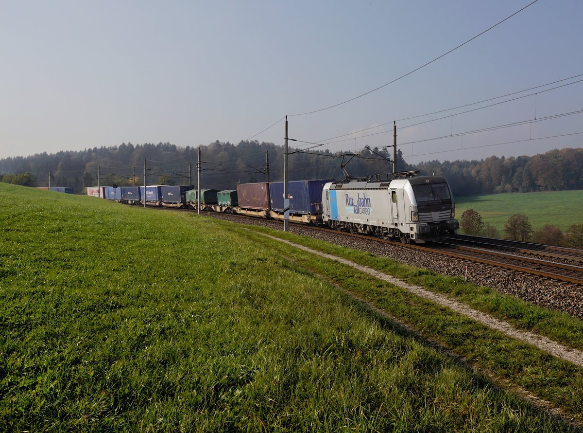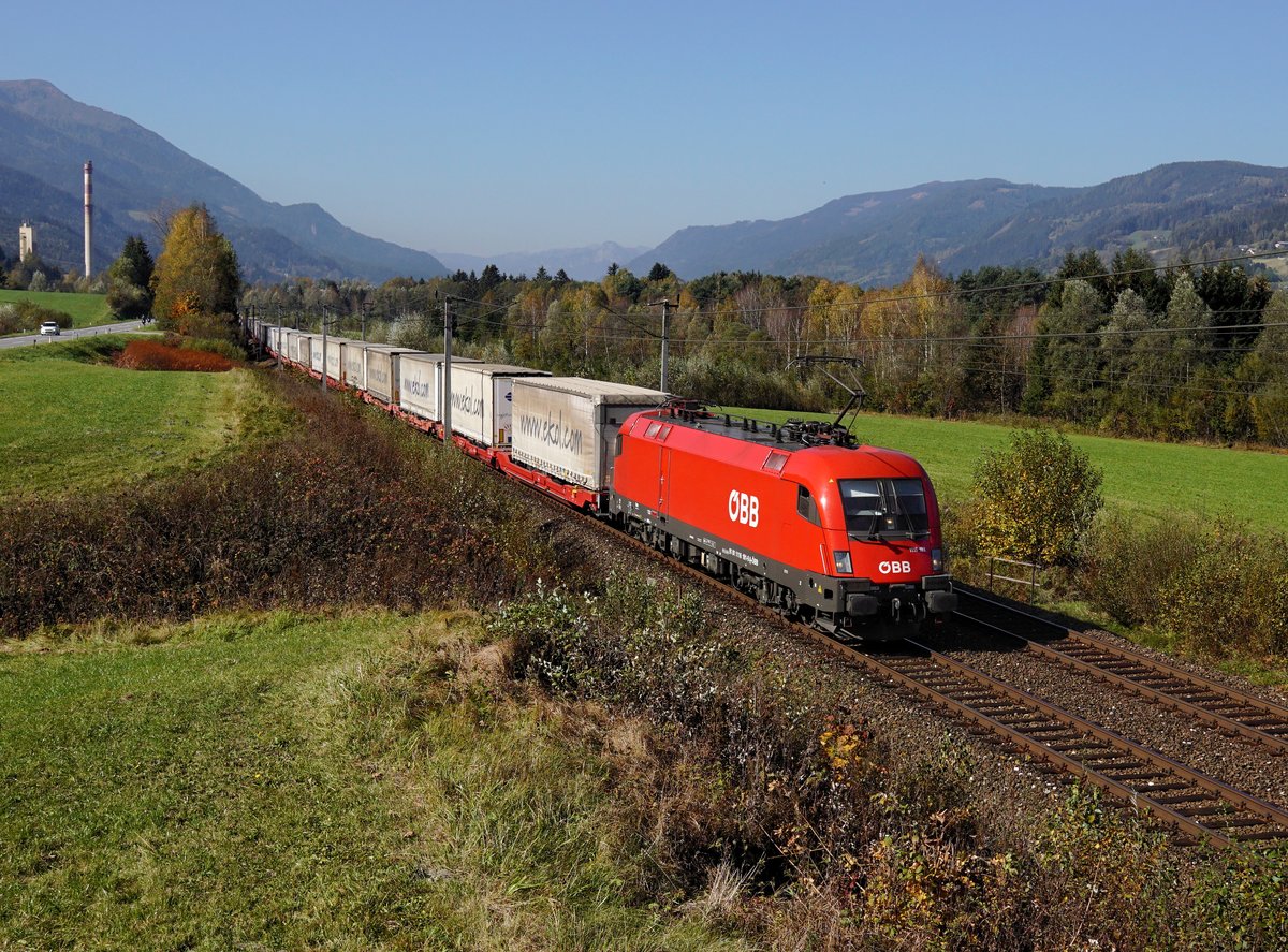 Die 193 810 mit einem umgeleiteten KLV-Zug am 19.10.2018 unterwegs bei Pöndorf.