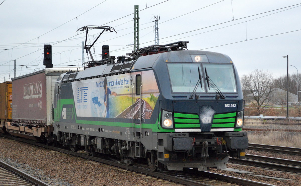 LTE Logistik- und Transport- GmbH mit der ELL Vectron "193 262" [NVR-Number: 91 80 6193 262-3 D-ELOC] und KLV-Zug aus Polen Richtung Rotterdam unterwegs am 15.01.19 Bf. Flughafen Berlin-Schönefeld.