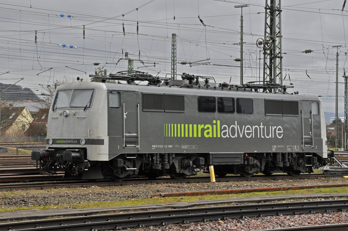 Railadventure Lok 111 222-6 steht auf einem Abstellgleis beim badischen Bahnhof. Die Aufnahme stammt vom 14.01.2019.
