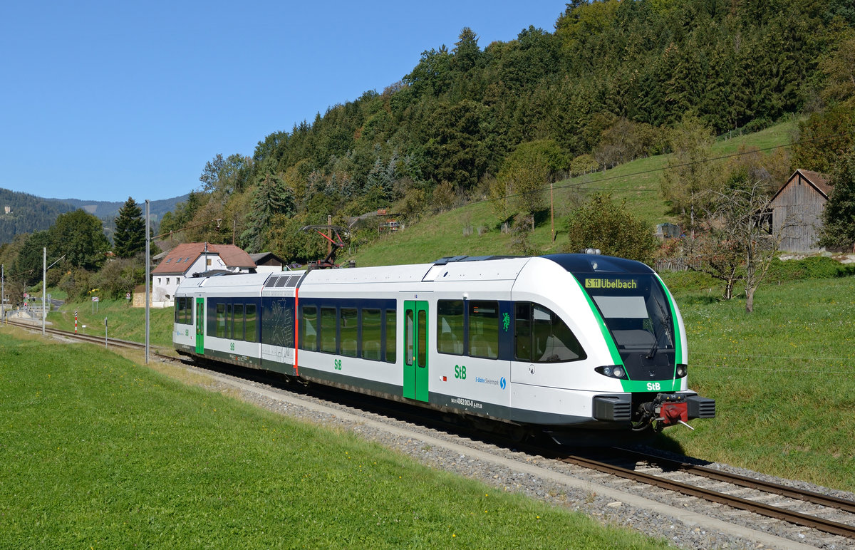 RABe 521 204 (Stadler FLIRT) der SBB GmbH (SBB) als SBB87669  Seehas  von Engen nach Konstanz verlässt den Bahnhof Welschingen-Neuhausen auf der Bahnstrecke Offenburg–Singen (Schwarzwaldbahn (Baden) | KBS 720).