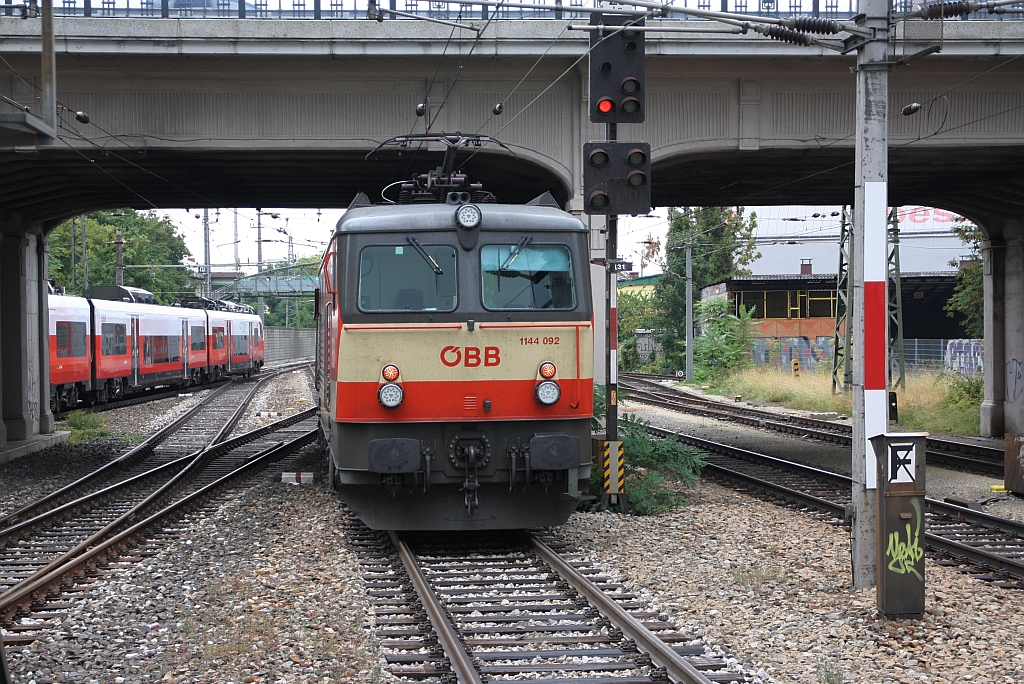 1144 092-4 verlässt am 01.September 2018 mit dem R 2338 (Payerbach-Reichenau - Wien Floridsdorf) den Bahnhof Wien Liesing.