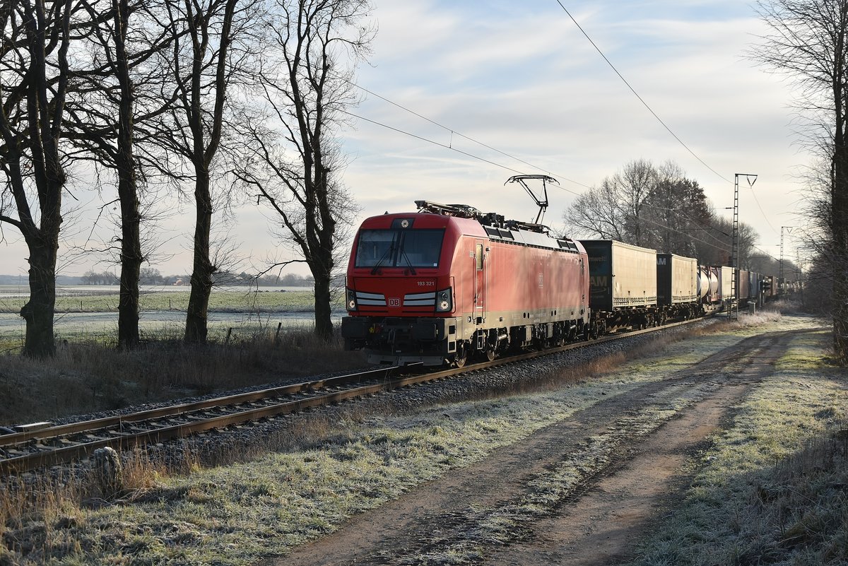 193 321 kommt am Morgen des 19 Januar 2019 mit einem Containerzug gen Venlo hier bei Boisheim vors Objektiv gefahren.