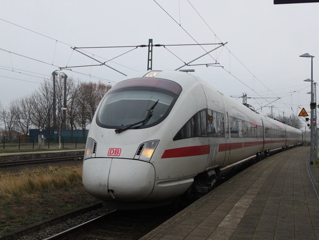 411 512-7   Freie und Hansestadt Hamburg  als ICE 1727 von Warnemünde nach München bei der Bereitstellung gegen 10:15 Uhr in Warnemünde.19.01.2019