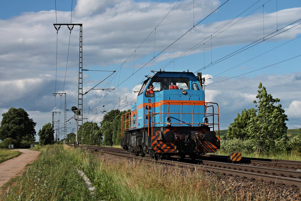 Am 06.06.2017 fuhr SWEG V102 (575 002-7) als Lokzug (Freiburg (Brsg) Rbf - Neuenburg (Baden)) bei Müllheim (Baden) durchs Markgräflerland und hatte nur noch wenige Kilometer bis zum Ziel vor sich.