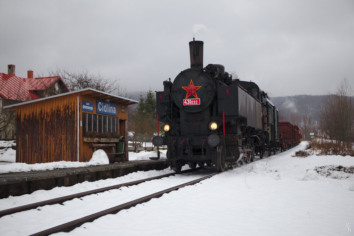 Auf der Fahrt von Stara Paka nach Turnov ist diese Aufnahme der 431.032 (ex ÖBB 93.1360) in der Haltestelle Cidlina entstanden. (13.01.2019)