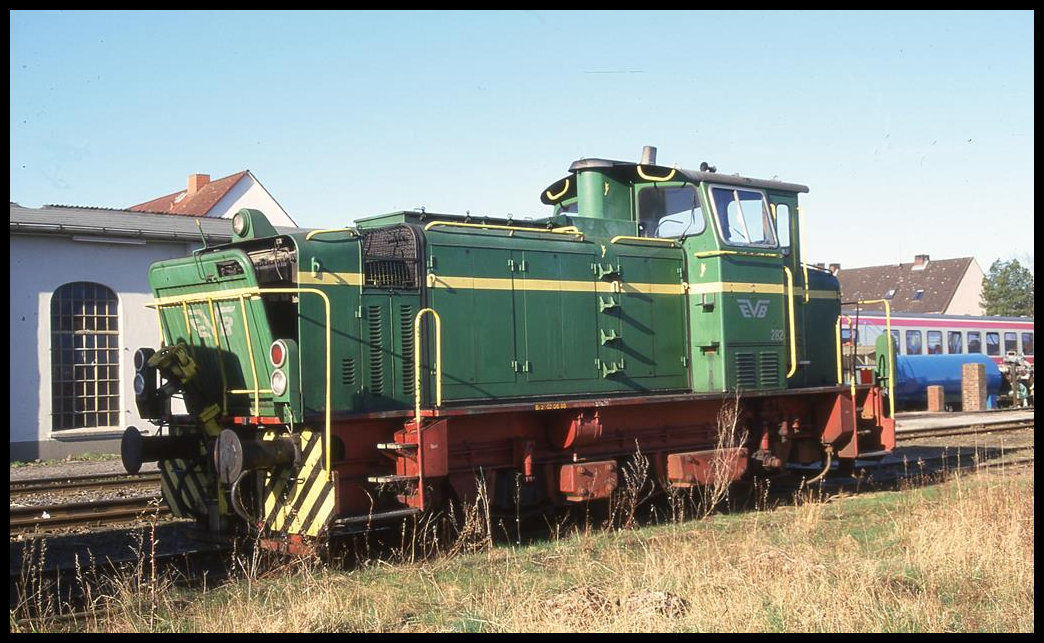 Betriebsstätte der EVB in Bremervörde am 13.4.2001: EVB Mak Stangenlok 281
