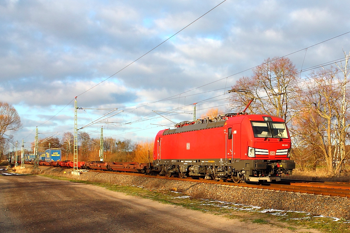 Die 193 353 mit einem KLV-Zug am 18.01.2018 in Nassenheide.