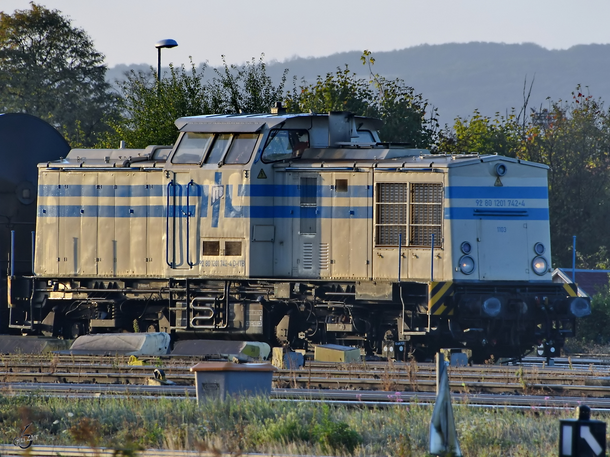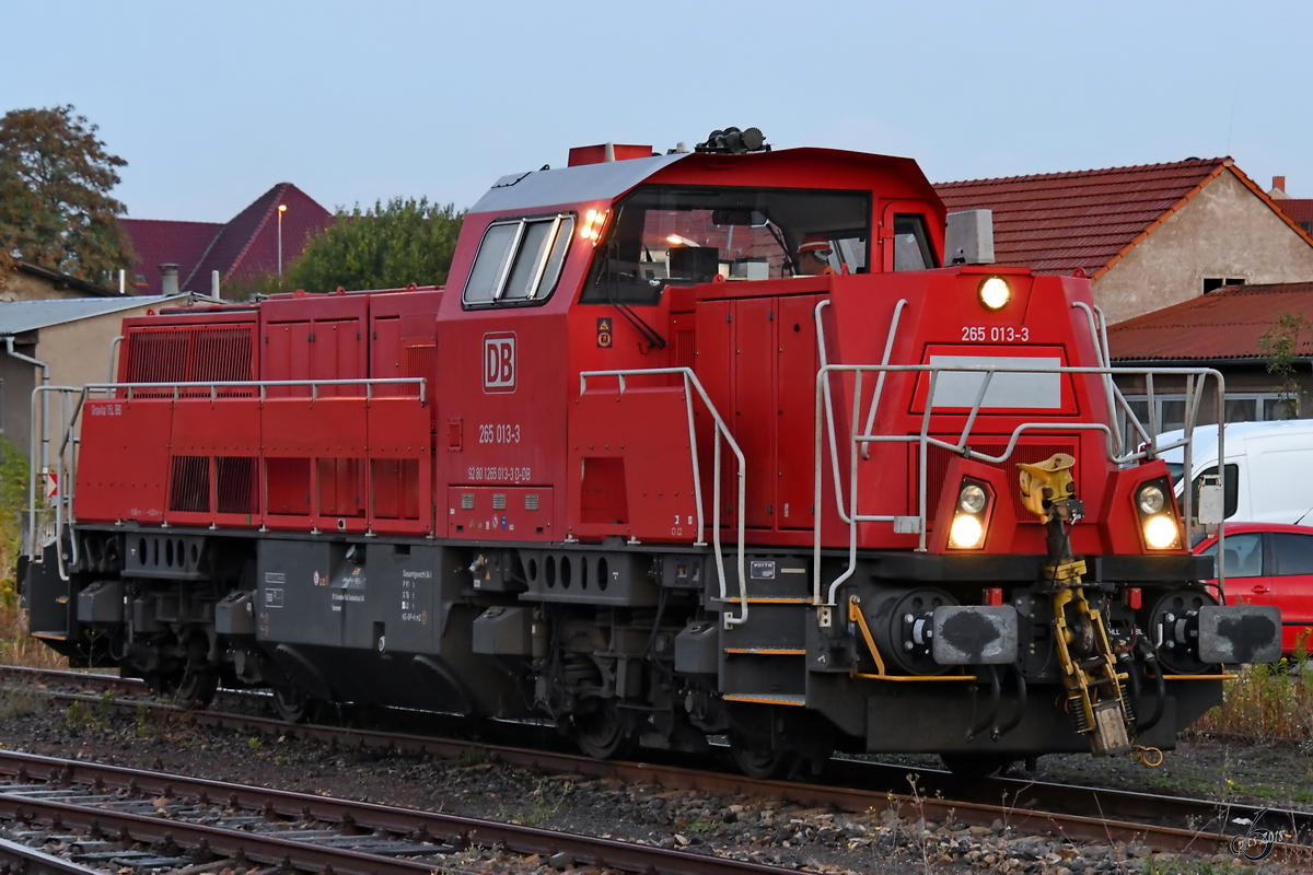 Die Diesellokomotive 265 013-3 Ende September 2018 am Bahnhof Nordhausen.