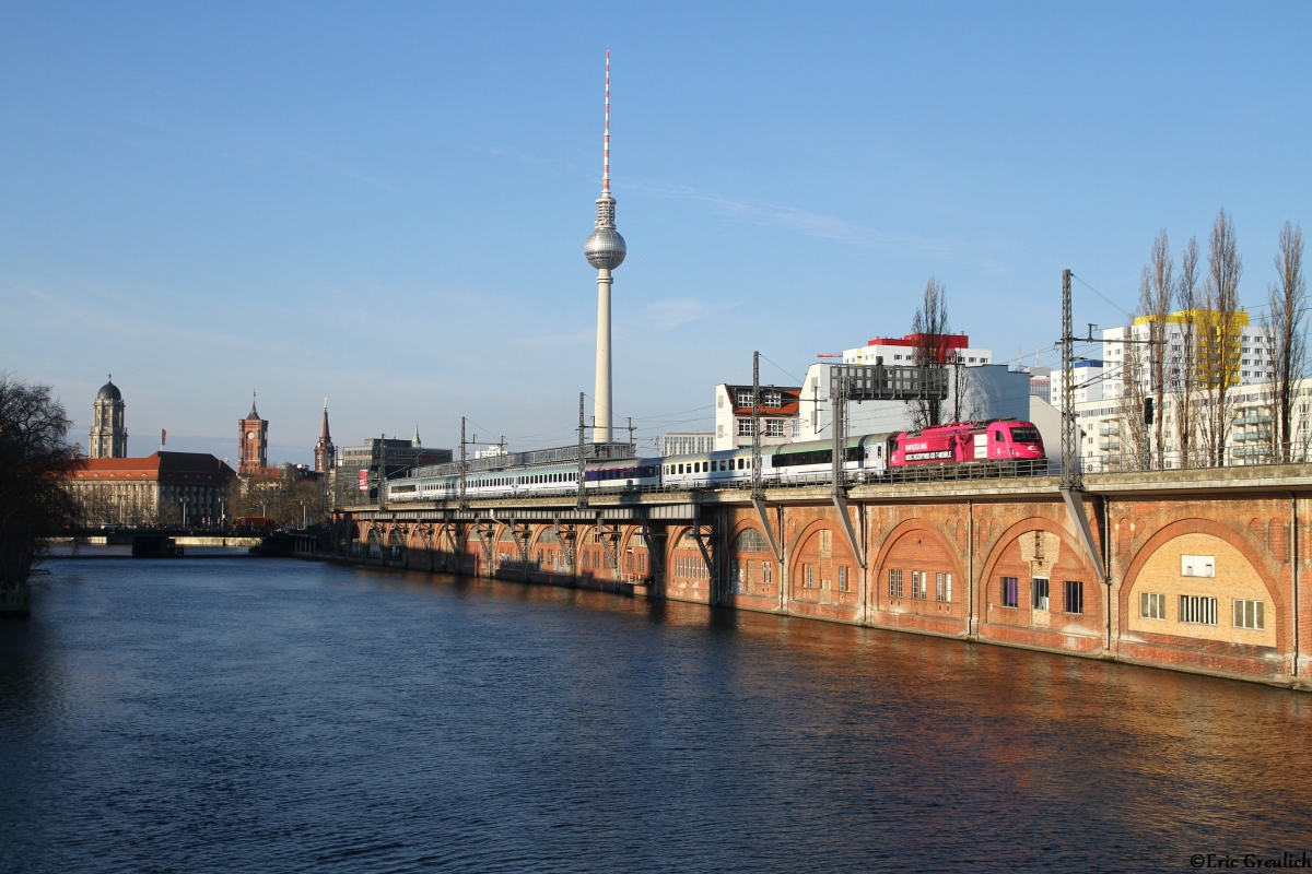 5370 010 mit dem EC von Berlin nach Warschau am 15.01.18 an den Jannowitzbrücken.