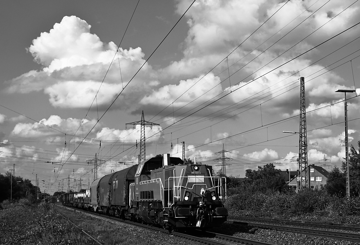 Bei solchen Wolken sieht die Gravita auch in schwarz-weiß gut aus: 265 022-4 am 10.09.2015 in Lintorf