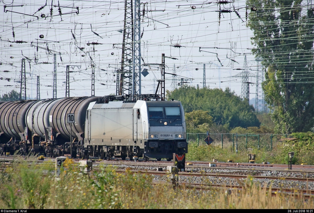 Kesselzug mit 186 261-4 der Akiem S.A.S., vermietet an CTL Logistics, erreicht den Bahnhof Großkorbetha. [28.7.2018 | 10:21 Uhr]