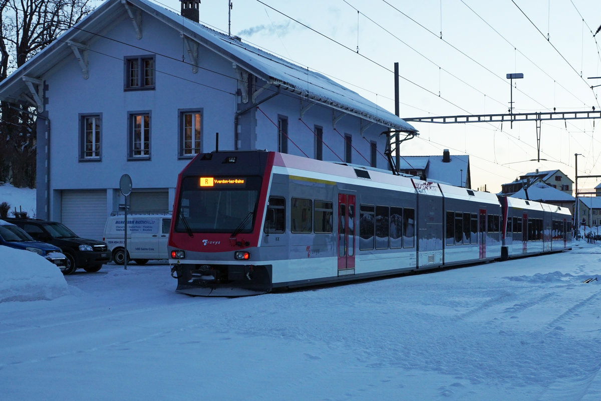 Winterliche Morgenstimmung im Bahnhof Sainte-Croix vom 18. Januar 2019.