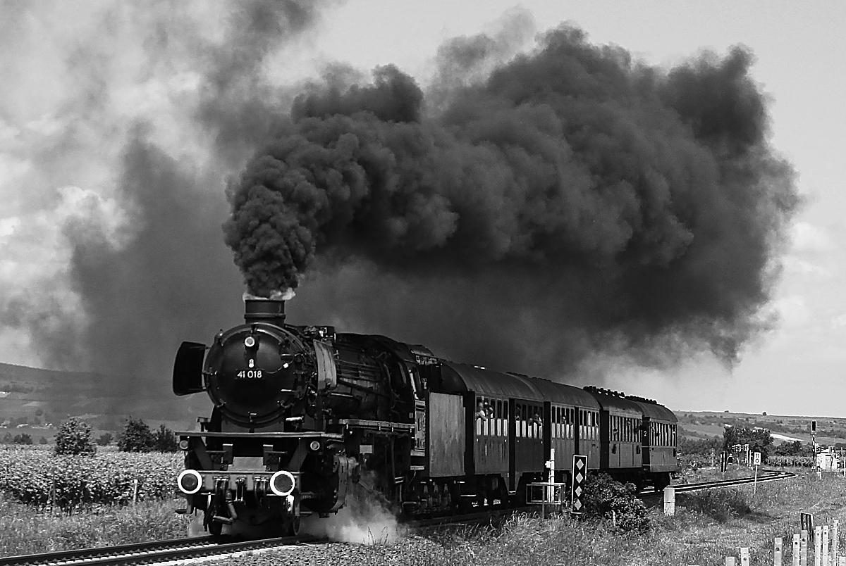 Zur Freude der Fotografen zeigte 41 018, was in ihr steckt, als sie am 31.05.2014 bei Wachenheim unterwegs ist. Ob die Anwohner sich ebenfalls freuten, weiß ich allerdings nicht.