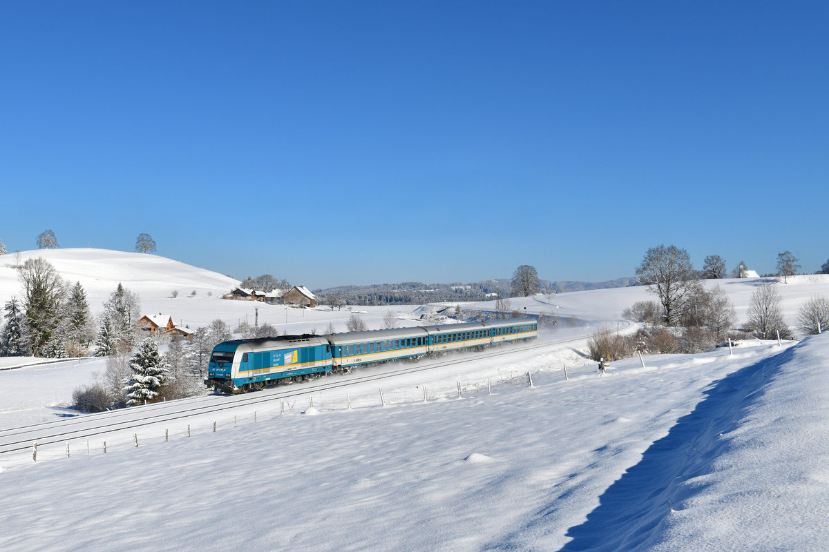 223 069 mit einem ALX am 13.02.2018 bei Heimhofen.