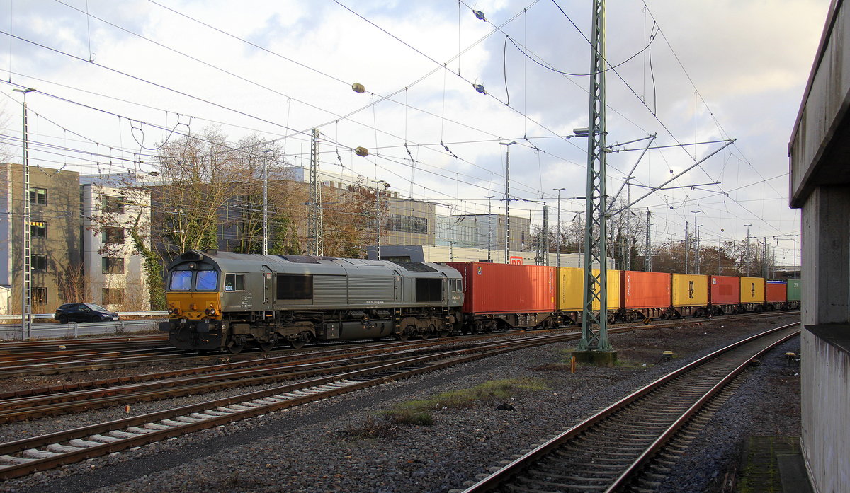 Die Class 66 DE6306 von Crossrail kommt mit einem MSC-Containerzug aus Antwerpen-Krommenhoek(B) nach Germersheim(D) und kommt aus Richtung Montzen/Belgien und fährt in Aachen-West ein.