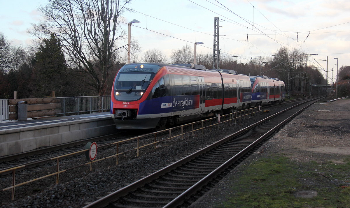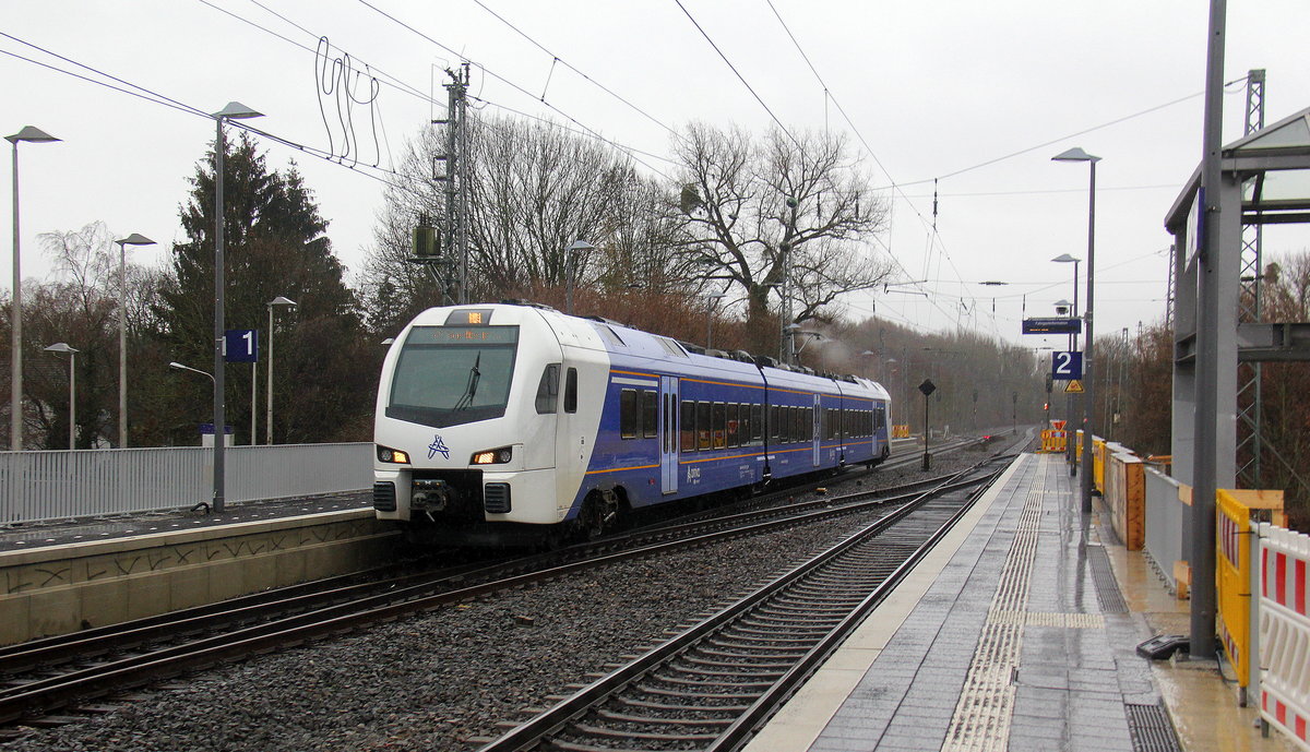 wei Euregiobahn (RB20) aus Alsdorf-Annapark nach Stolberg-Altstadt,Düren und kammen die Kohlscheider-Rampe hoch aus Richtung Herzogenrath und halten in Kohlscheid und fahren in Richtung Richterich,Laurensberg,Aachen-West,Aachen-Schanz,Aachen-Hbf.