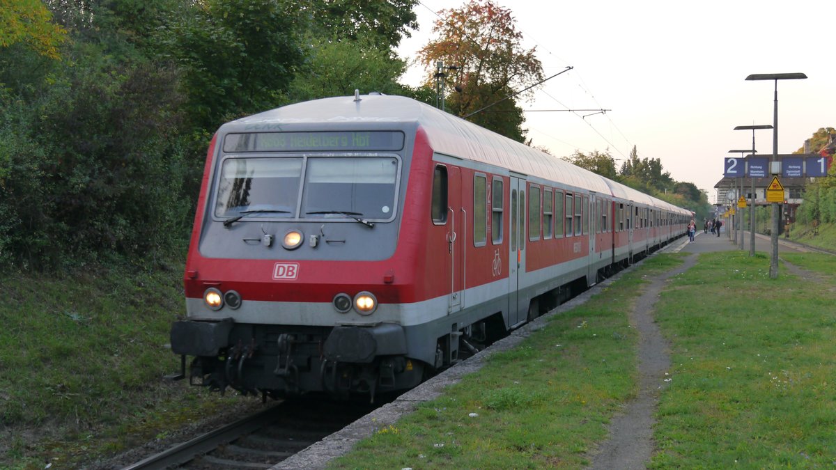 Eine n-Wagen auf der Fahrt als RB68 nach Heidelberg beim Zwischenhalt in Darmstadt Süd. Aufgenommen am 27.9.2017 18:34
