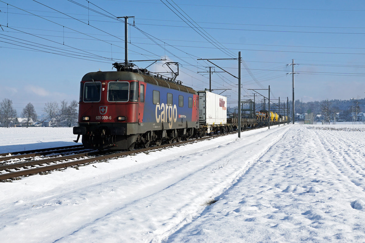 Güterzug bei Deitingen unterwegs mit der Re 620 059-6  CHAVORNAY  am 29. Januar 2019.