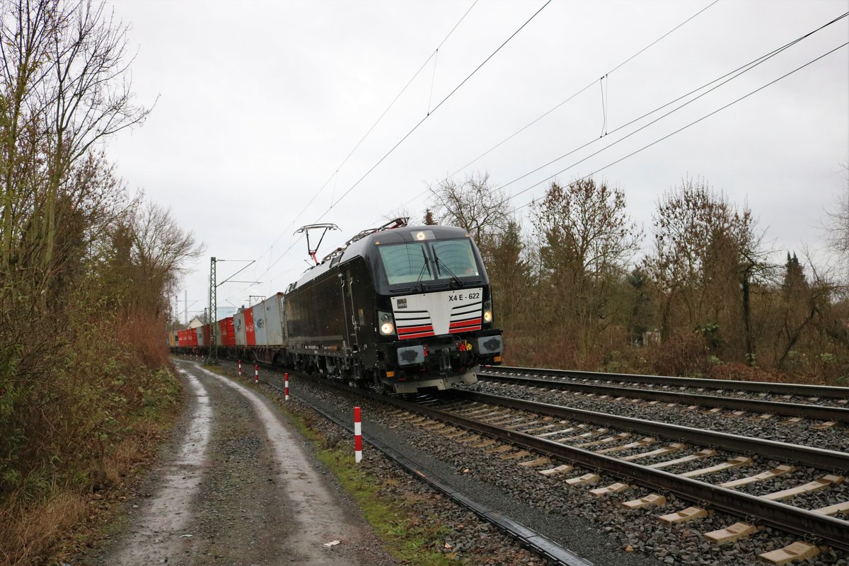 Güterzug RBL - Gerlafingen mit der Re 620 024-0 zwischen Solothurn und Biberist am 29. Januar 2019. Leider ist die  ROTHRIST  nur noch mit einem Wappen unterwegs.
