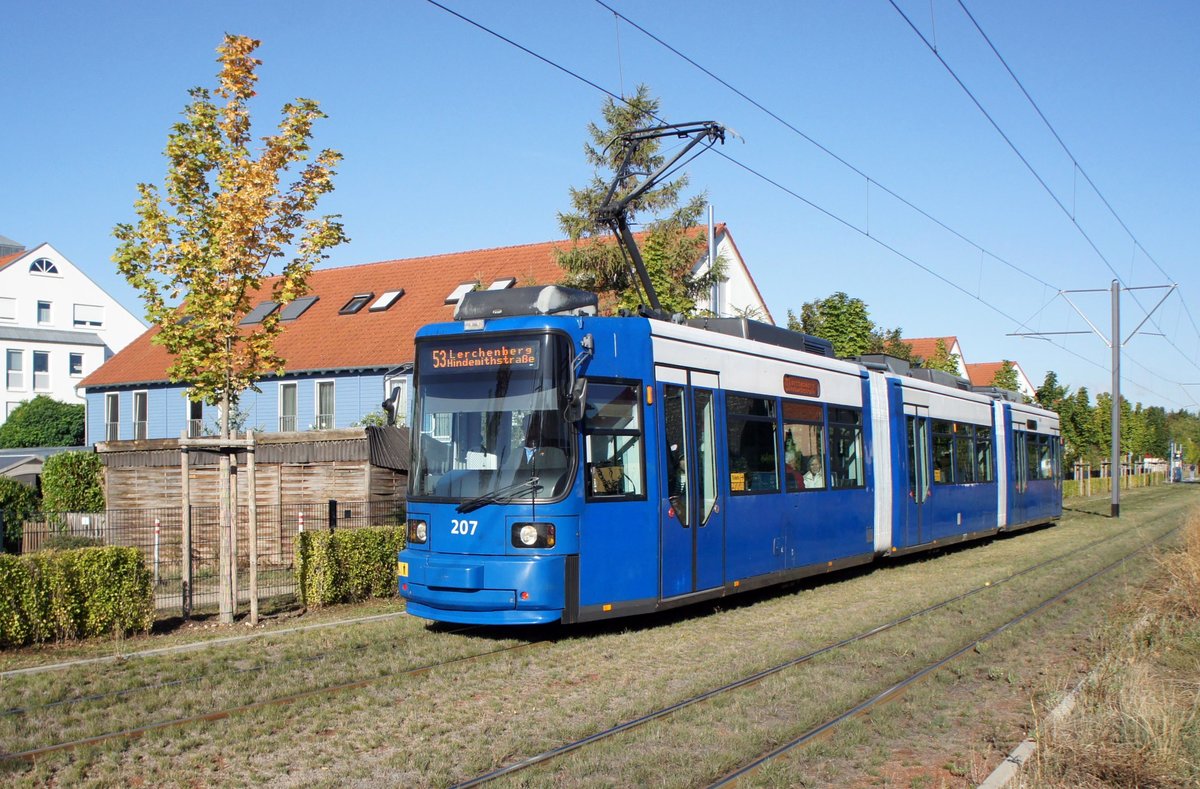 Straßenbahn Mainz / Mainzelbahn: Adtranz GT6M-ZR der MVG Mainz - Wagen 207, aufgenommen im September 2018 in Mainz-Bretzenheim.