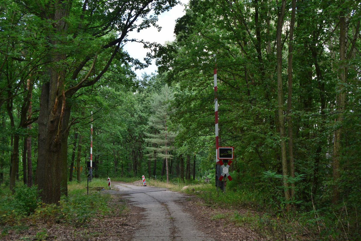 Blick auf den Bahnübergang (BÜ) auf der L 133 nordwestlich des Hp Dessau-Waldersee.