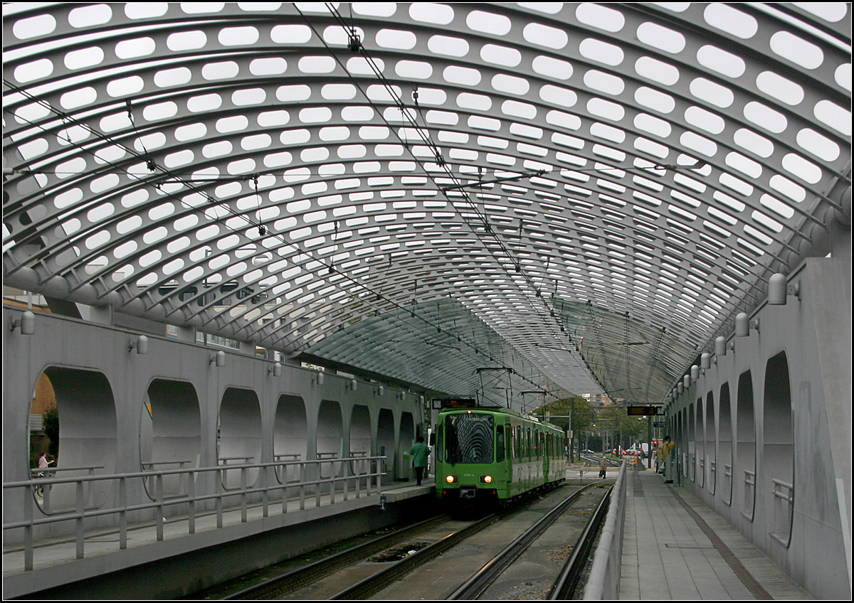 Unter stählernem Himmel - Stadtbahnstation Noltenmeyerbrücke über dem Mittellandkanal in Hannover. 02.11.2006 (M)