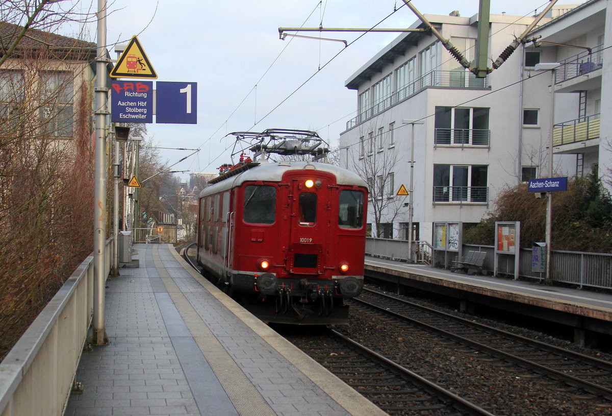 10019 der Centralbahn kommt als Lokzug aus Mönchengladbach-Hbf nach Aachen-Hbf und kommt aus Richtung Rheydt,Wickrath,Beckrath,Herrath,Erkelenz,Baal,Hückelhoven-Baal,Brachelen,Lindern,Süggerath,Geilenkirchen,Frelenberg,Zweibrüggen,Übach-Palenberg,Rimburg,Finkenrath,Hofstadt,Herzogenrath, Kohlscheid,Richterich,Laurensberg,Aachen-West und fährt durch Aachen-Schanz in Richtung Aachen-Hbf. Aufgenommen vom Bahnsteig von Aachen-Schanz. Bei schönem Winterwetter am Kalten Morgen vom 29.1.2019.