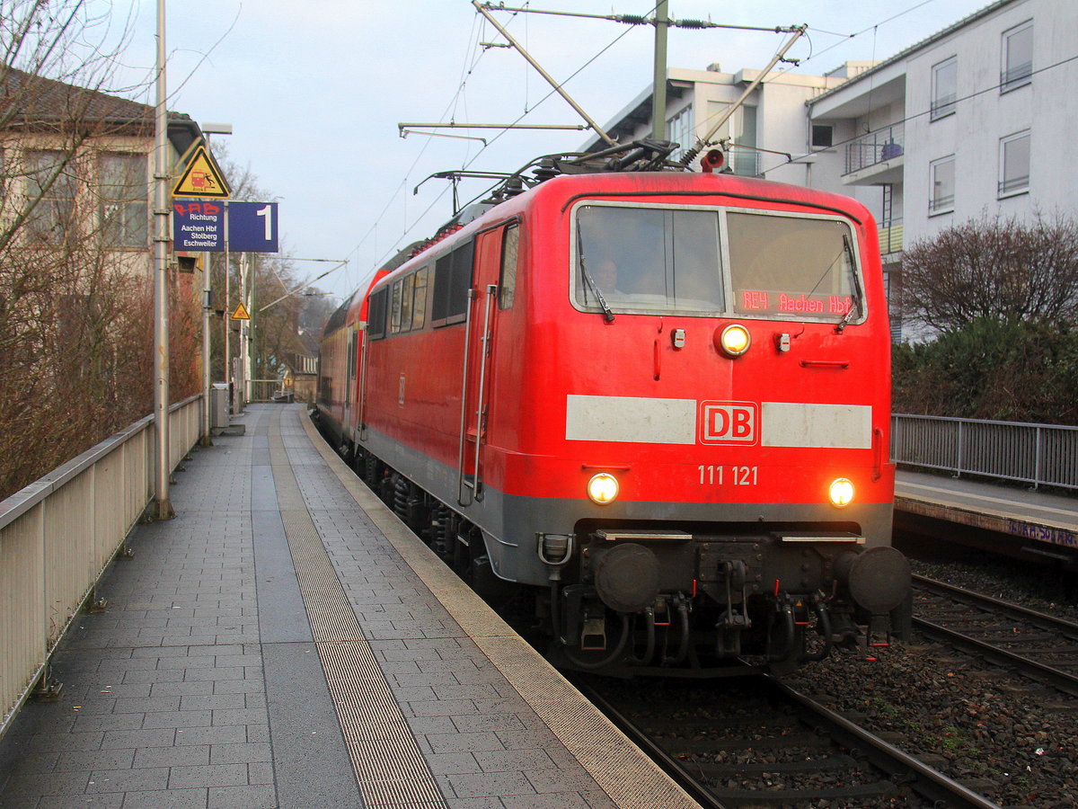 111 121 DB kommt mit dem RE4 von Dortmund-HBf nach Aachen-Hbf und kommt aus Richtung Rheydt,Wickrath,Beckrath,Herrath,Erkelenz,Baal,Hückelhoven-Baal,Brachelen,,Lindern,Süggerath,Geilenkirchen,Frelenberg,Zweibrüggen,Übach-Palenberg,Rimburg,Finkenrath,Hofstadt,Herzogenrath, Kohlscheid,Richterich,Laurensberg,Aachen-West und fährt in Aachen-Schanz ein und hält in Aachen-Schanz und fährt dann weiter in Richtung Aachen-Hbf.