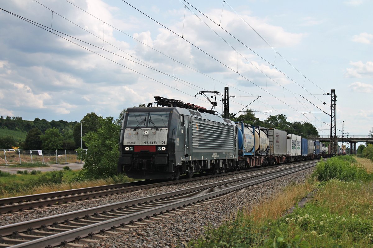 Am 20.07.2017 war MRCE/SBBCI ES 64 F4-106 (189 106-8) auf dem Weg nach Rotterdam Waalhaven, als sie mit ihrem Containerzug bei Buggingen in Richtung Freiburg (Breisgau) fuhr.
