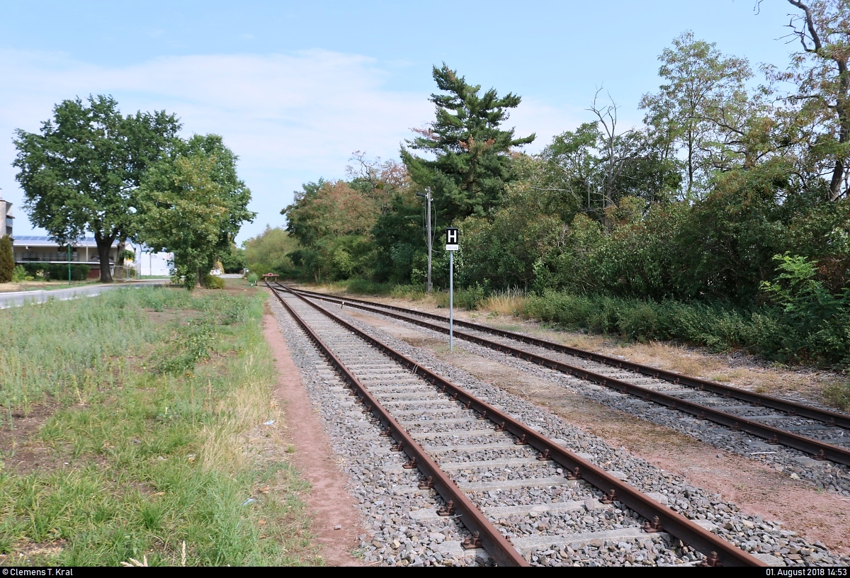 Blick auf das Ende der Bahnstrecke Dessau–Gohrau-Rehsen (KBS 257) im Bahnhof Wörlitz. Wie der Name schon sagt, führte die Strecke früher noch bis Gohrau-Rehsen, d.h. gut 5 Kilometer weiter. [1.8.2018 | 14:53 Uhr]