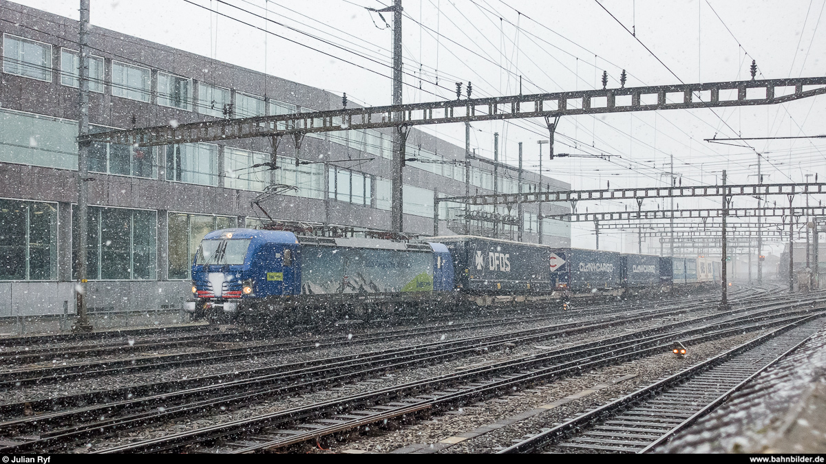Die für die BLS Cargo fahrende Hupac 193 497 am 28. Januar 2019 mit einem UKV-Zug bei der Einfahrt in Olten.