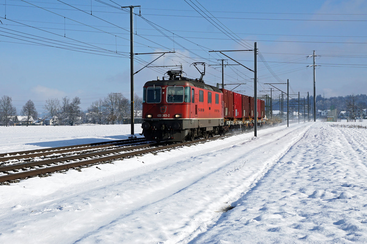 Erste Winteraufnahmen des Jahres 2019 aus meiner Region Solothurn mit Sonne und Schnee. Re 430 363-2 als Lokzug. Die Re 4/4 sind Universal-Elektrolokomotiven der SBB. Dementsprechend gelangen sie bei SBB CARGO vor allen Kategorien von Güterzügen zum Einsatz. Als "BOBO-Freund" widme ich bei meiner Einstellung vom 30. Januar 2019 die gesamte bei BB.de mögliche Serie bestehend aus sechs Bildern diesen fotogenen Maschinen. Entstanden sind alle Aufnahmen am 29. Januar 2019 bei Deitingen. Foto: Walter Ruetsch