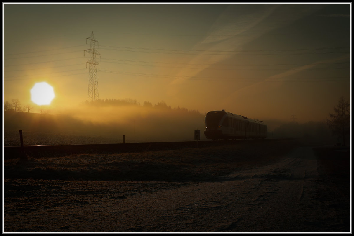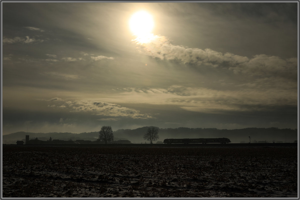 Nebel und Sonne beherrschen den 29.Jänner 2019 in der Südweststeiermark. Ein GTW 2/8 bei Frauental Bad Gams.
