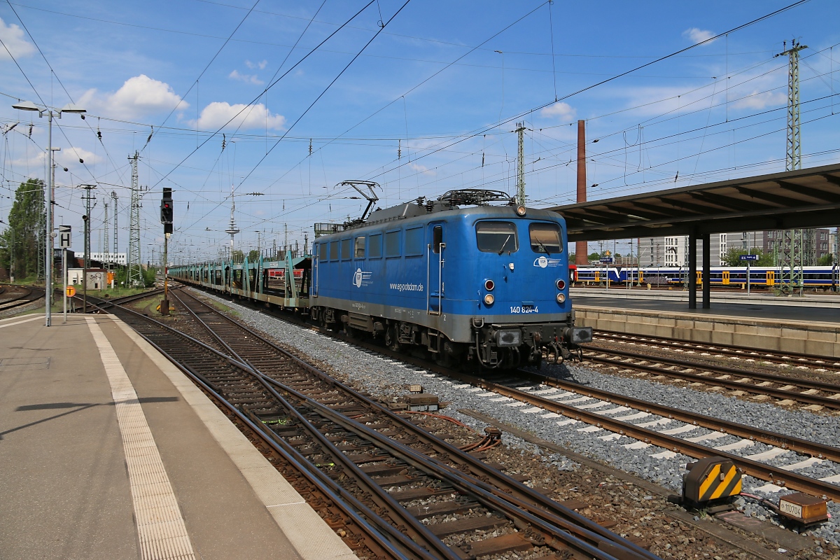 140 842-4 der EGP mit leeren Autotransportwagen im Hauptbahnhof Bremen. Aufgenommen am 11.05.2016.