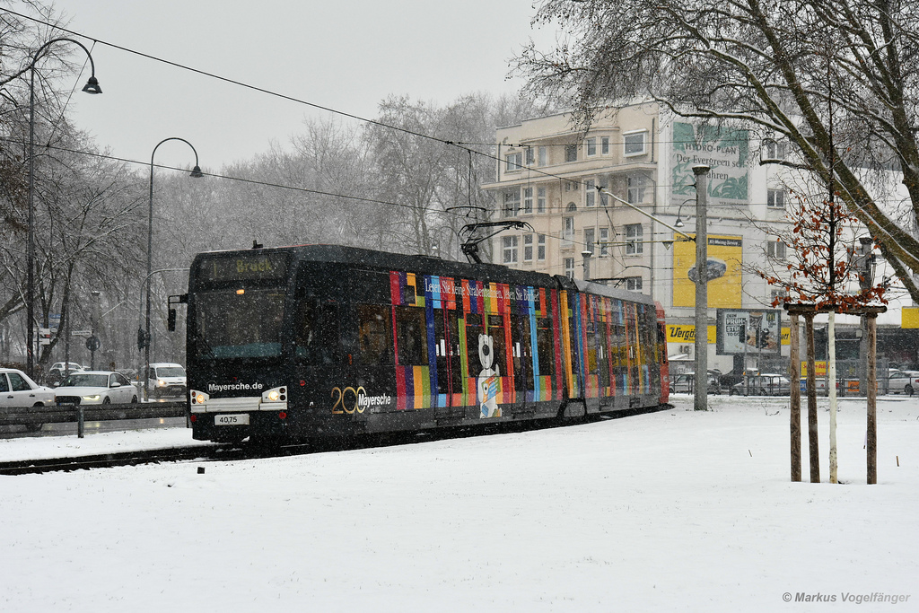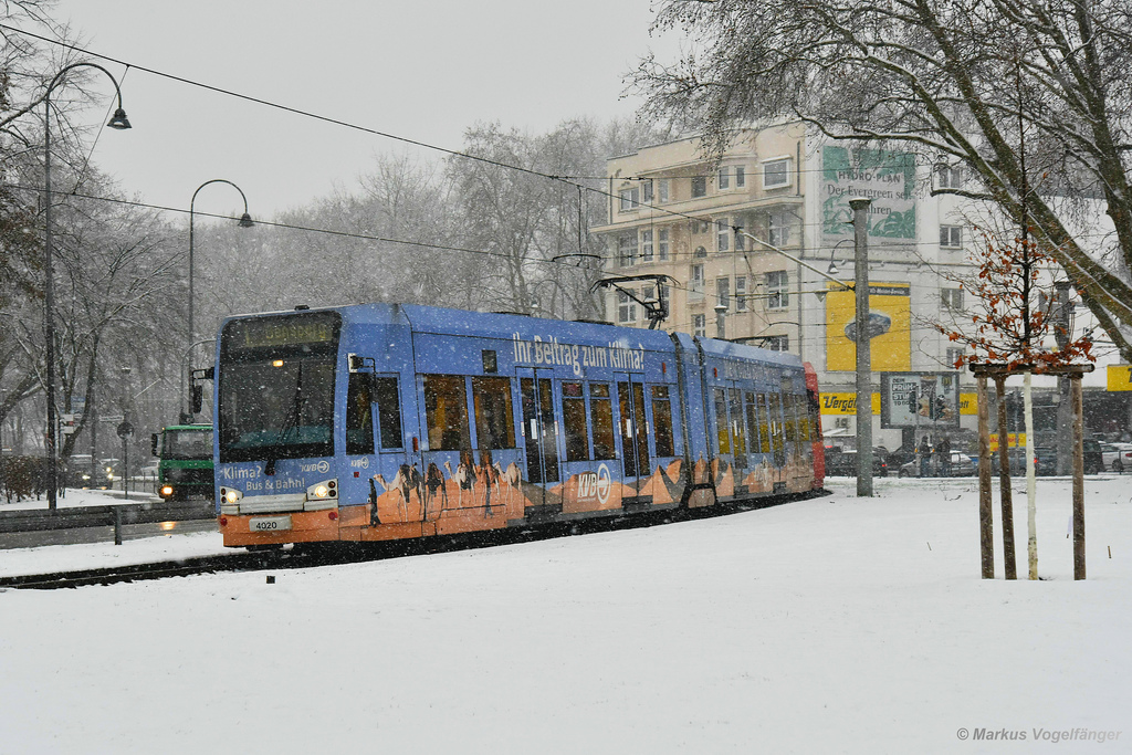 B-Wagen 2424 (ex 2194) wurde als 18. Fahrzeug des "Projekts 2400" fertig saniert und befindet sich im Liniendienst. Hier zu sehen als Linie 4 kurz vor der Haltestelle Von-Sparr-Straße am 28.01.2019.