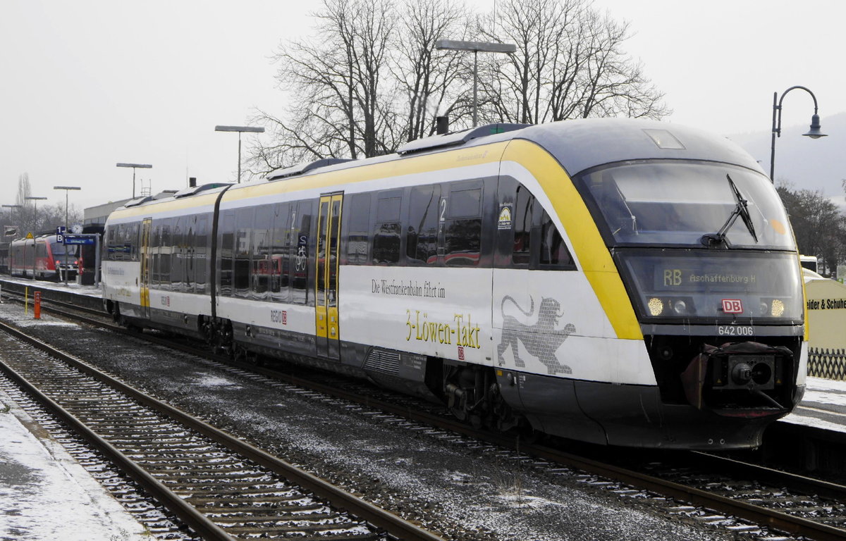 642 006 der Westfrankenbahn im neuen BW-Design. Am 24.1.19 bedient das Fahrzeug die RB 22316 Miltenberg - Aschaffenburg.
