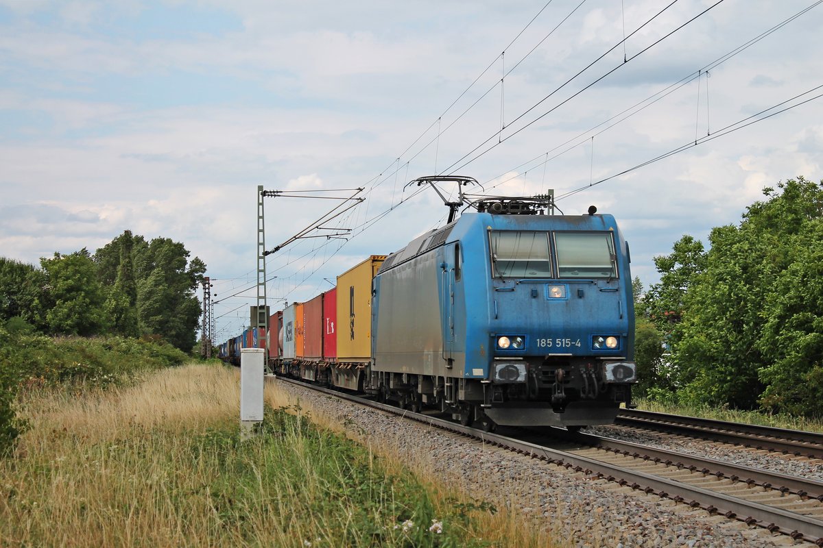 Am 20.07.2017 bespannte ATLU/RTX 185 515-4 einen Containerzug aus Belgien von Aachen West bis an die Schweizer Grenze, als sie bei Buggingen das meiste ihrer Reise hintersich schon hatte.